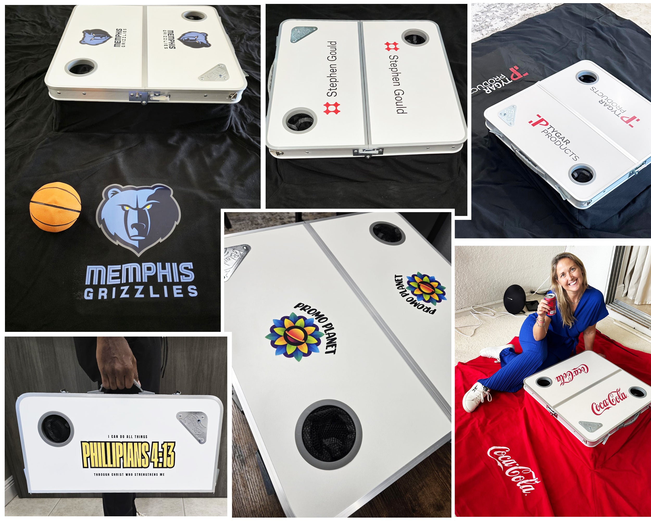 Our TaBlanket can be decorated on the Blanket and/or on the Table. We have full range of customization options from one color to multicolor logos and full Pantone color matching blankets.